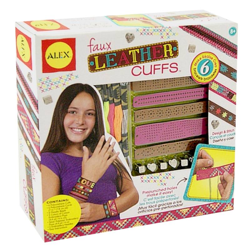 Создай стильные браслеты-манжеты из искусственной кожи, и укрась их яркой неоновой и серебристой вышивкой. В наборе 6 заготовок браслетов-манжетов, 6 шнурков из искусственной кожи, 6 металлических бусин, нитки 5 цветов, 2 иголки, бисер и инструкция. Не предназначено для детей младше трех лет - содержит мелкие детали.
