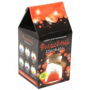 В каждом наборе из серии: красивая баночка, в которой удобно следить за выращиванием кристаллов, волшебный кристаллический порошок, кристаллическая таблетка, палочка для перемешивания, пробка, веревочка, карточка с пожеланием и инструкция.