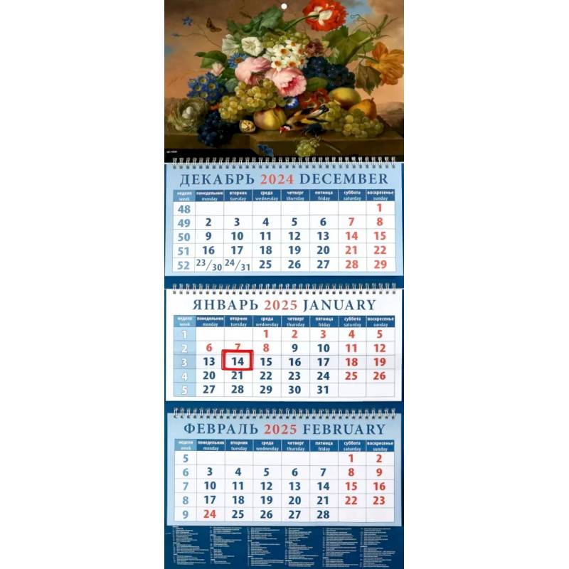 Календарь квартальный на 2025 год Натюрморт с фруктами и цветами