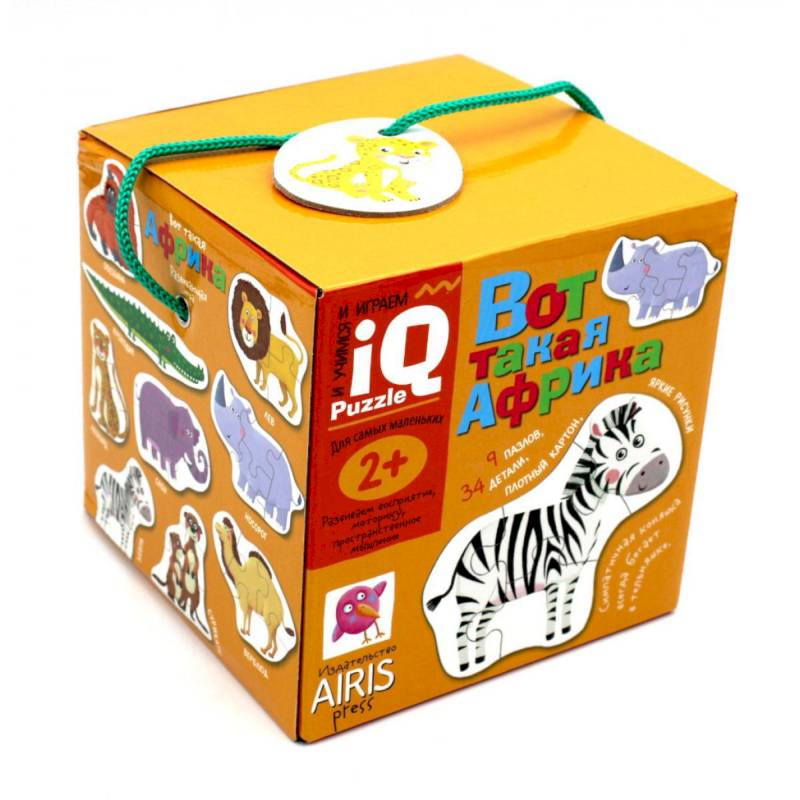 Пазлы 'Вот такая Африка' – это увлекательная настольная игра для знакомства ребёнка с животными Африки, развития восприятия и мелкой моторики. В наборе 9 пазлов с цветными картинками животных, которые складываются из 34 элементов. Цель игры - правильно сложить из нескольких частей каждую картинку-пазл.
