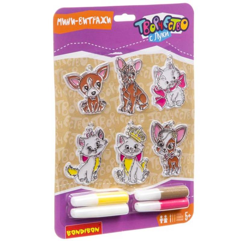 Состав набора: пластиковые формы 6 шт., витражные краски 4 шт.
