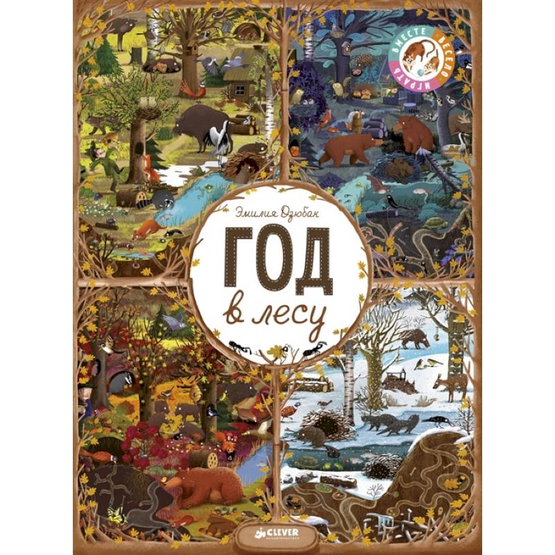 Книга 'Год в лесу' - это 12 разворотов, каждый из которых посвящен одному месяцу. Так вы сможете наблюдать за жизнью лесных жителей в любое время года,