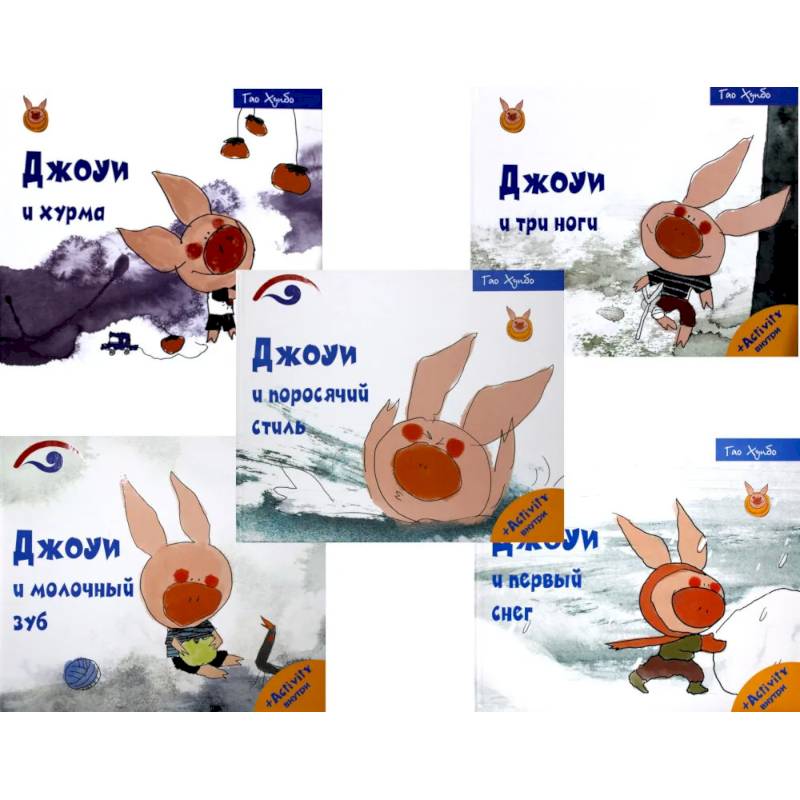 Комплект 'Лучшие книги для малышей. Учимся с Джоуи' содержит книги: 'Джоуи и поросячий стиль' Джоуи поспорил с Щенком, о том чей стиль плаванья лучше. И они решили устроить соревнование. Кто победил и кто самый преданный фанат Джоуи, ты узнаешь, прочитав новую книгу о приключениях счастливого поросёнка. 'Джоу и поросячий снег' Книги о поросенке Джоуи написаны Хонгбо Гао, которого называют 'первым человеком в китайской детской литературе'. В центре этой серии - маленький поросенок, очаровательный и уверенный в своих силах. Жизнь у него простая, но невереоятно веселая, что позволит детям увидеть в герое себя и вместе с ним посмеяться над его проделками. А оригинальные иллюстрации и легкий текст привьют ребятам любов к чтению. 'Джоу и молочный зуб' Маленький поросёнок Джоуи живёт просто и очень весело. Но вот беда - у него выпал зуб! Хорошо, что мама может помочь! 'Джоу и три ноги' Сколько ног нужно для счастья, или как поросёнок Джоуи подвернул ногу и встретил горделивую журавль, которую сумел покорить своим великодушием. Для дошкольного возраста. 'Джоу и хурма' В новой книге поросёнок Джоуи встречает необычного друга, а ещё учится терпению. Для дошкольного возраста.