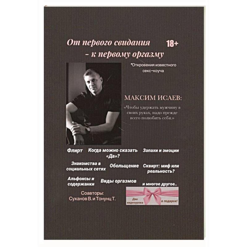 Эта книга о том, как правильно вести себя на первом свидании с мужчиной, о поцелуях, взаимных отношениях и чувствах. Вам будет интересно узнать об отношениях с партнёром в браке и особенностях поведения мужчин. Вы окунётесь в гармонию человеческих отношений и красоту женского тела. Я подскажу вам, как сохранить постоянное взаимное влечение и страсть. Приятного прочтения!