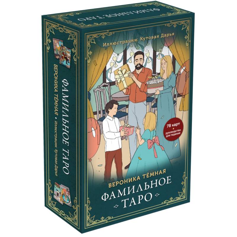 'Фамильное Таро' Вероники Тёмной, автора полюбившегося читателям оракула 'Лес любви' - это колода, которая рассказывает про повседневную жизнь каждого из нас. Это история наших семей, друзей, близких и дальних родственников… Образы этих карт, созданные художницей Дарьей Кутовой, интуитивно понятны, даже если вы впервые взяли в руки Таро, и выполнены в традиции Таро Артура Уэйта.