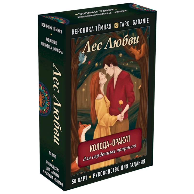 Авторский оракул 'Лес любви' практикующего таролога, консультанта и блогера Вероники Тёмной станет вашей путеводной нитью в сложной и запутанной сфере отношений. Он поможет разрешить проблемы выбора, поведает о чувствах другого человека к вам, осветит перспективы текущих отношений, их будущее, настоящее и прошлое, предупредит о грядущих потрясениях и радостях.