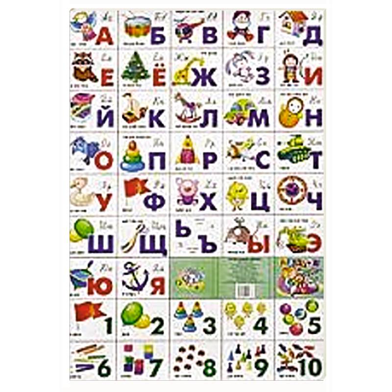 Настоящее издание представляет собой плакат с русским алфавитом и цифрами от 1 до 10 и картинками к ним.