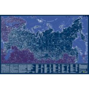 Светятся: пунсоны городов, контуры материковой части России, контуры федеральных округов.