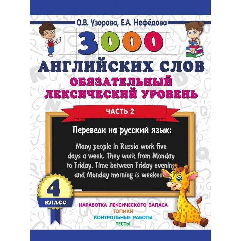 Книга «Быстро выучим английские слова. Обязательный лексический уровень. 4 класс» создано известными педагогами-практиками О.В. Узоровой и Е.А. Нефёдовой. Материал пособия соответствует ФГОС и программе обучения английскому языку в начальной школе. Базовый минимум английских слов и выражений по разным темам за 4 класс представлен таким образом, что даёт возможность ученикам быстро выучить их значение и написание. Учителя и родители могут отметить время, которое ребёнок затратил на выполнение заданий. На каждой странице дано контрольное время.